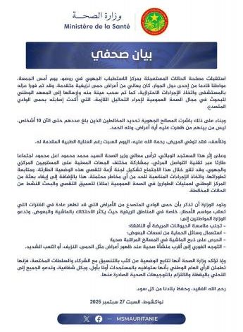 كما طالبت بالتوجه الفوري إلى المراكز الصحية عند ظهور الأعراض، مؤكدة أنها تتابع الوضع عن كثب وستوافي الرأي العام بالمستجدات.